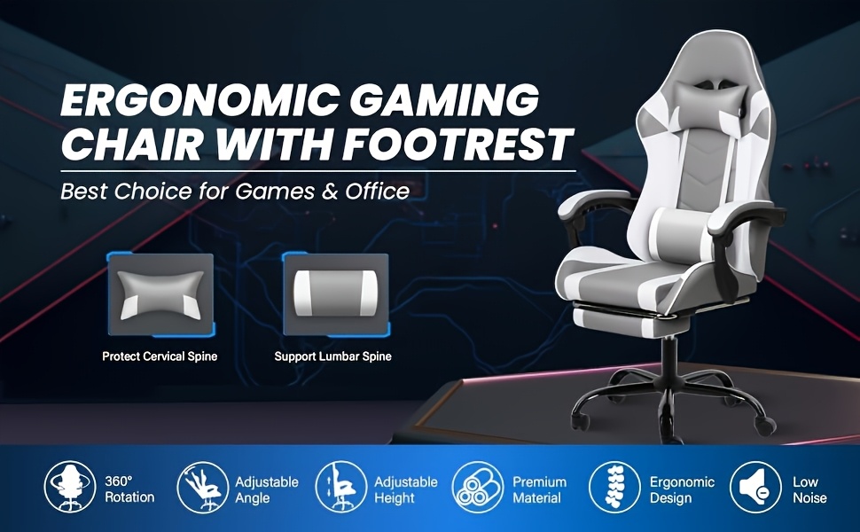 Ergonomic Design for Superior Comfort: Experien unparalleled comfort with our gaming chair, designed with adjustable lumbar support, and neck pillow to promote a healthy posture during racing gaming sessions.